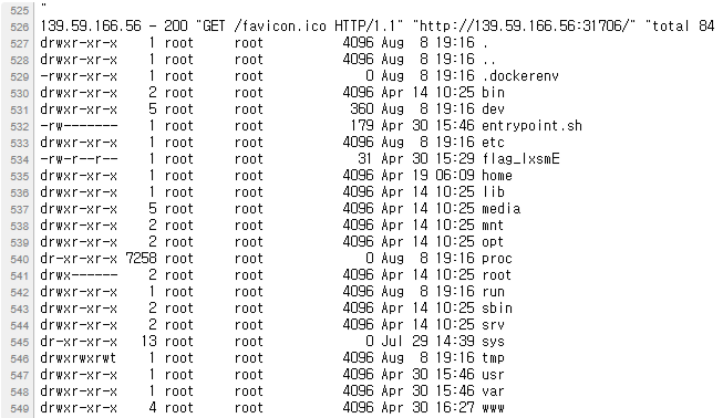 하지만 플래그는 루트 경로에 존재합니다. 도커 설정 파일들을 보면 알 수 있습니다.