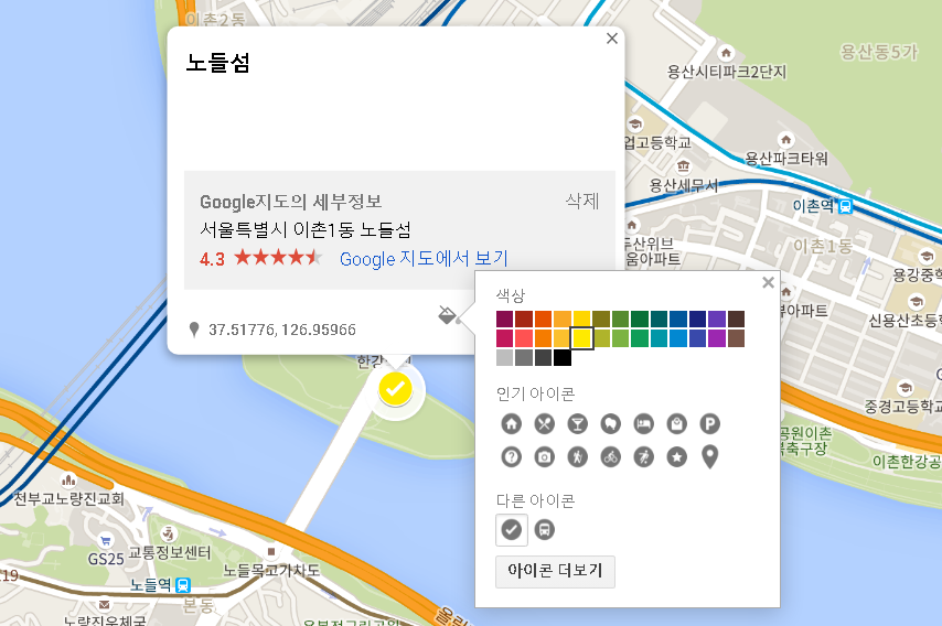 장소명, 마커 아이콘, 색상 등을 원하는대로 커스터마이징 할 수 있어요.