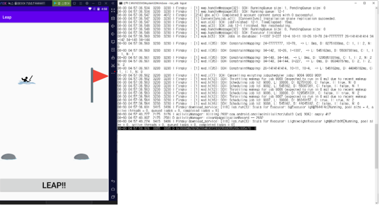 그리고 nox 에서 실행 후 logcat을 확인해보았습니다.