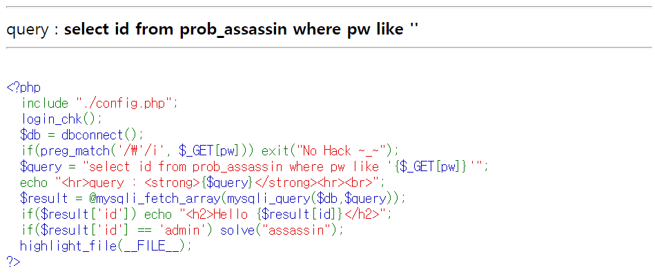 $query = "select id from prob_assassin where pw like '{$_GET[pw]}'";