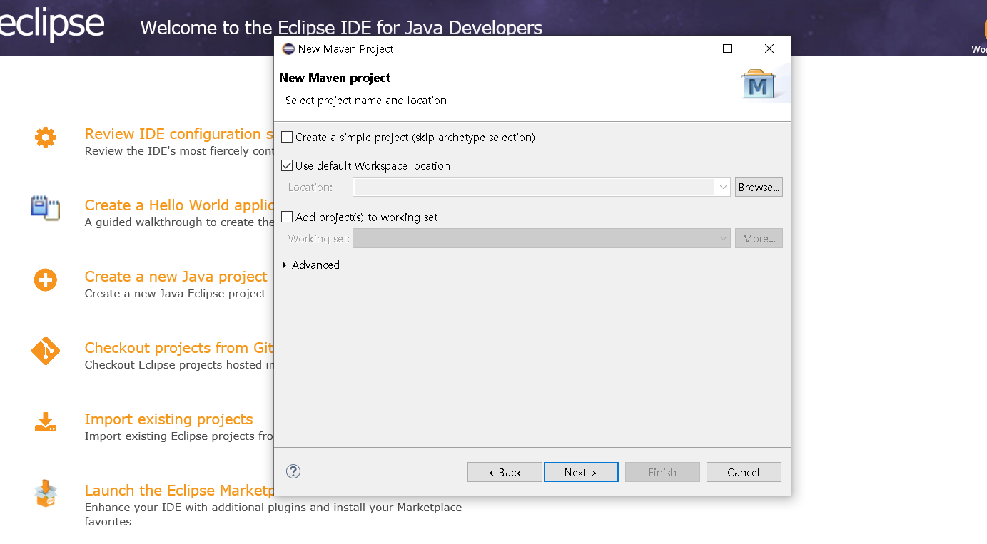 저는 Create a simple project를 선택하고 Next를 눌렀어요.