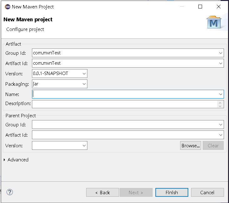 필수 입력창은 Group Id와 Artifact Id이므로 원하는 Id를 적어줘요.