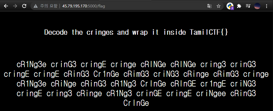 flag_str = 'cR1Ng3e crinG3 cringE cringe cRINGe cRINGe cring3 \