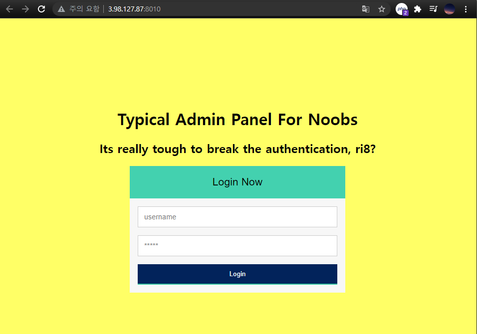로그인 화면이 첫화면입니다. username 과 password 를 입력하는 input 폼이 있습니다.