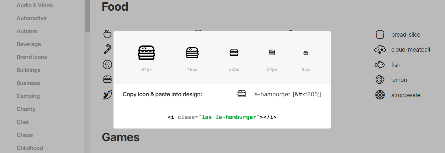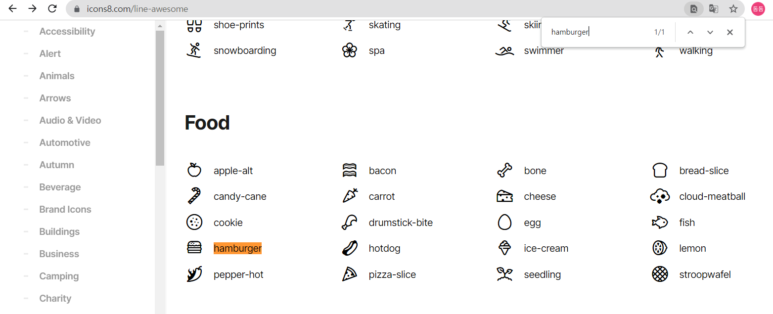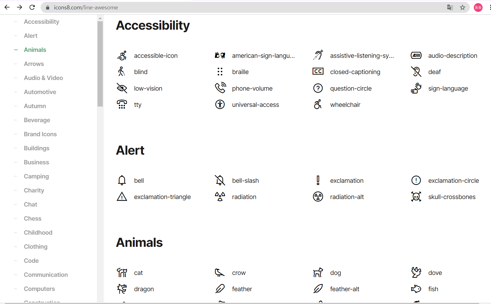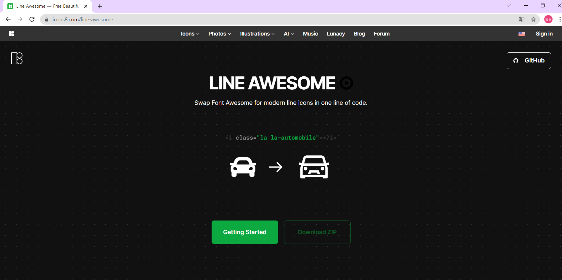 이제 line awesome 사이트에서 먼저 어떤 아이콘들이 있는지 확인해보아요.