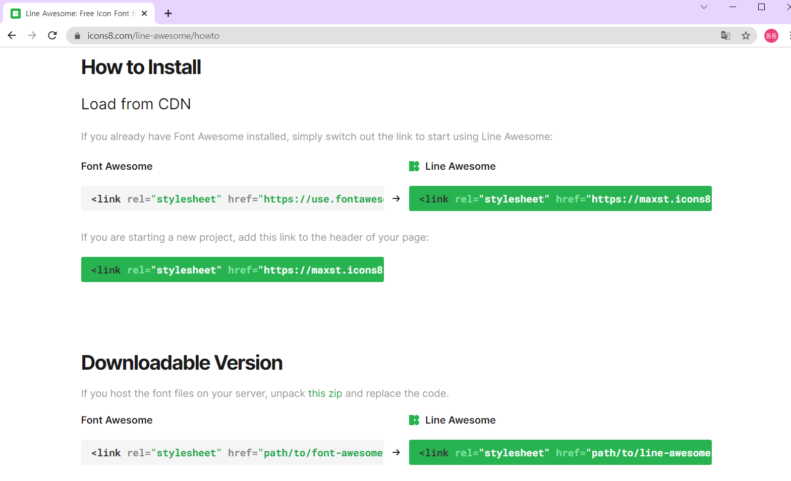 Line Awesome 사이트를 즐겨찾기 해놓고