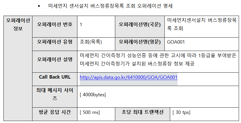 이 API의 URL은 "http://apis.data.go.kr/6410000/GOA/GOA001" 라고 적혀있어요.
