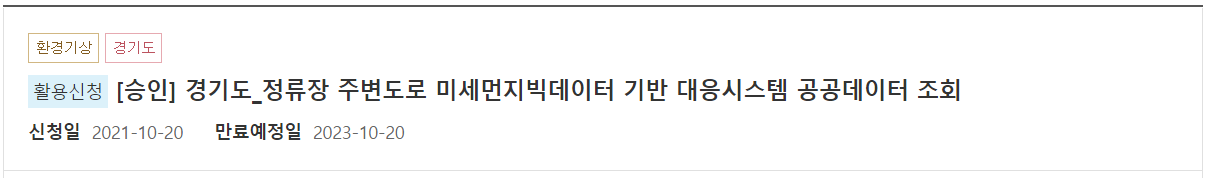 "경기도_정류장 주변도로 미세먼지빅데이터 기반 대응시스템 공공데이터 조회"