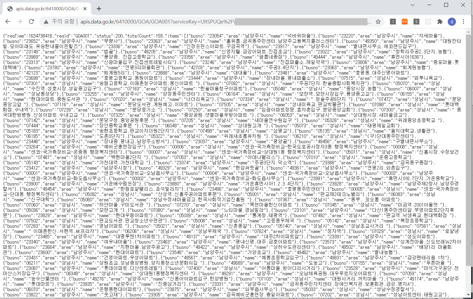 http://apis.data.go.kr/6410000/GOA/GOA001?ServiceKey=서비스키&type=json&numOfRows=10&pageNo=1