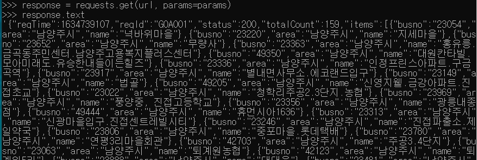 응답메시지 명세에 있는 항목들로 출력결과를 받게되는 거죠.