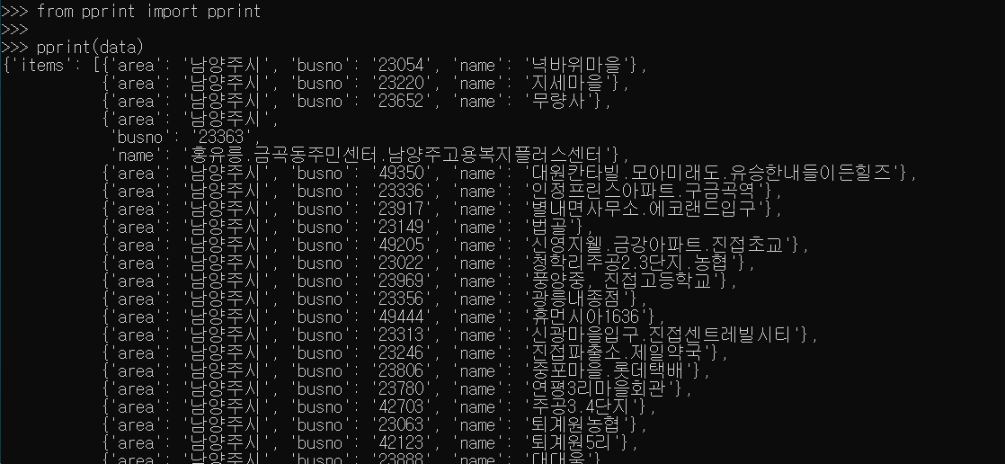 이렇게 진짜 최종 json형태의 결과데이터를 가져올 수 있었습니다!