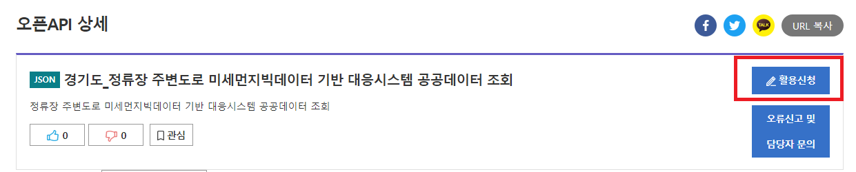 우측에 있는 활용신청 버튼을 눌러주세요!
