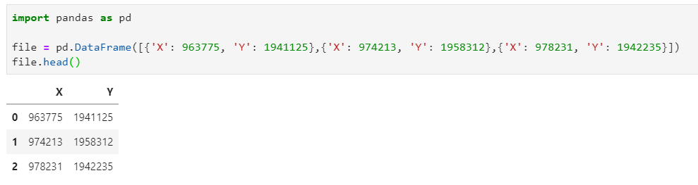 file의 'X' 컬럼과 'Y' 컬럼의 모든행의 좌표계를 변경하고자 합니다.