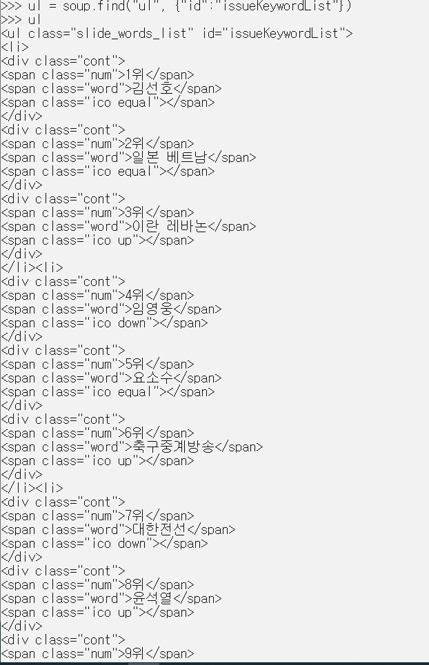실시간 이슈키워드를 1위부터 10위까지 제대로 잘 가져왔네요!!
