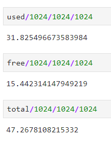 /1024/1024/1024 로 3번 나눠주면 GB로 표기할 수 있어요.