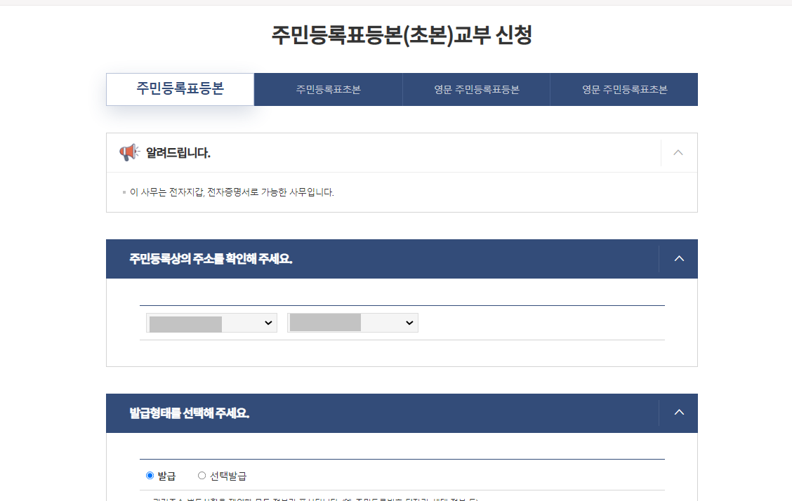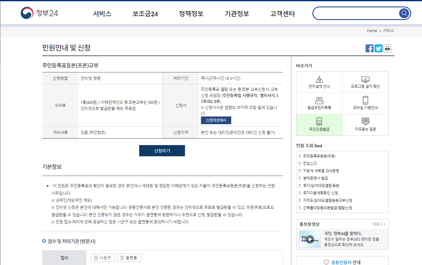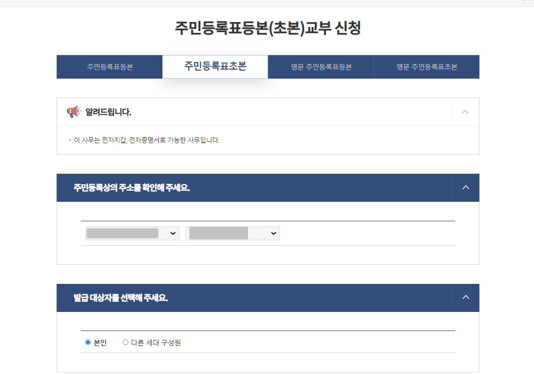 저는 등본과 초본 모두 뗄거라서 등본부터 신청해보겠습니다!
