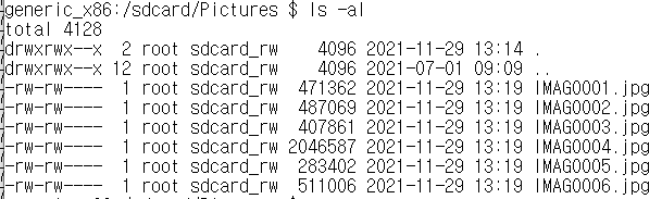 그럼 위와 같이 로그가 쭉 뽑히는데요. 보니깐 공유 폴더로부터 /sdcard/Picture경로에 이미지들이 저장되는 것을 볼 수 있습니다.