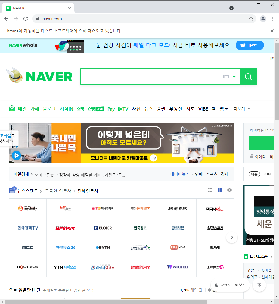 위 코드를 실행하면 아래와 같이 naver 사이트가 출력되면서