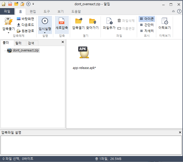 압축을 풀면 app-release.apk 파일이 하나 나옵니다.
