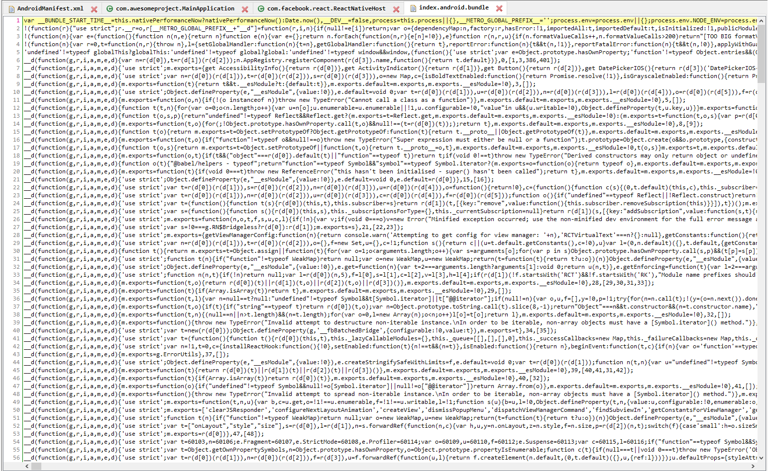AndroidManifest.xml 파일을 먼저 보았을 때 com.awesomeproject.MainApplication 가 앱의 시작점임을 알 수 있습니다.