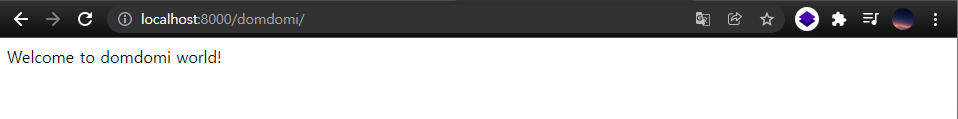 1. 웹 브라우저 주소창에 http://localhost:8000/domdomi 입력 시 서버에서는 /domdomi/ 페이지를 요청합니다.