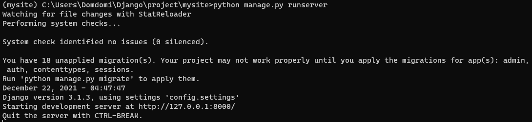 | [Django] 장고 프로젝트 생성하기 (0) | 2021.12.21 |