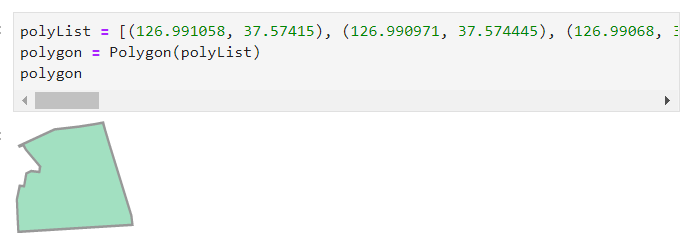 polyList = [(126.991058, 37.57415), (126.990971, 37.574445), (126.99068, 37.574386), (126.990017, 37.574284), (126.989087, 37.574182), (126.98771, 37.57354), (126.987727, 37.573512), (126.987871, 37.573566), (126.987967, 37.573386), (126.988527, 37.572729), (126.988513, 37.572651), (126.988499, 37.57257), (126.98849, 37.572519), (126.988174, 37.572555), (126.987989, 37.572462), (126.987901, 37.571964), (126.98773, 37.57198), (126.987616, 37.571452), (126.987648, 37.570731), (126.987675, 37.570187), (126.987725, 37.570188), (126.988518, 37.570237), (126.98877, 37.570252), (126.989436, 37.570293), (126.992129, 37.570456), (126.992084, 37.570821), (126.99154, 37.572586), (126.991237, 37.573562), (126.991058, 37.57415)]