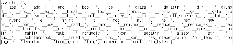 (아래는 123이라는 Integer(정수) 타입의 속성에는 어떤 것이 있는지 확인하는 예시입니다.)