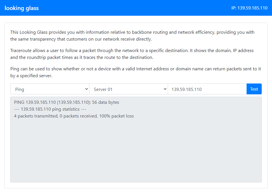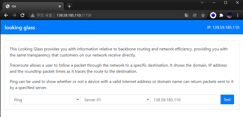 우측의 Test 버튼을 누르면 Ping 이 입력된 IP로 보내집니다.