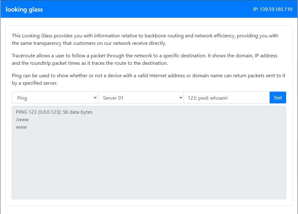 위 원리를 이용해서 아래 페이지에서도 IP주소 뒷 부분에 세미콜론을 추가하고 명령어를 실행해보았습니다.