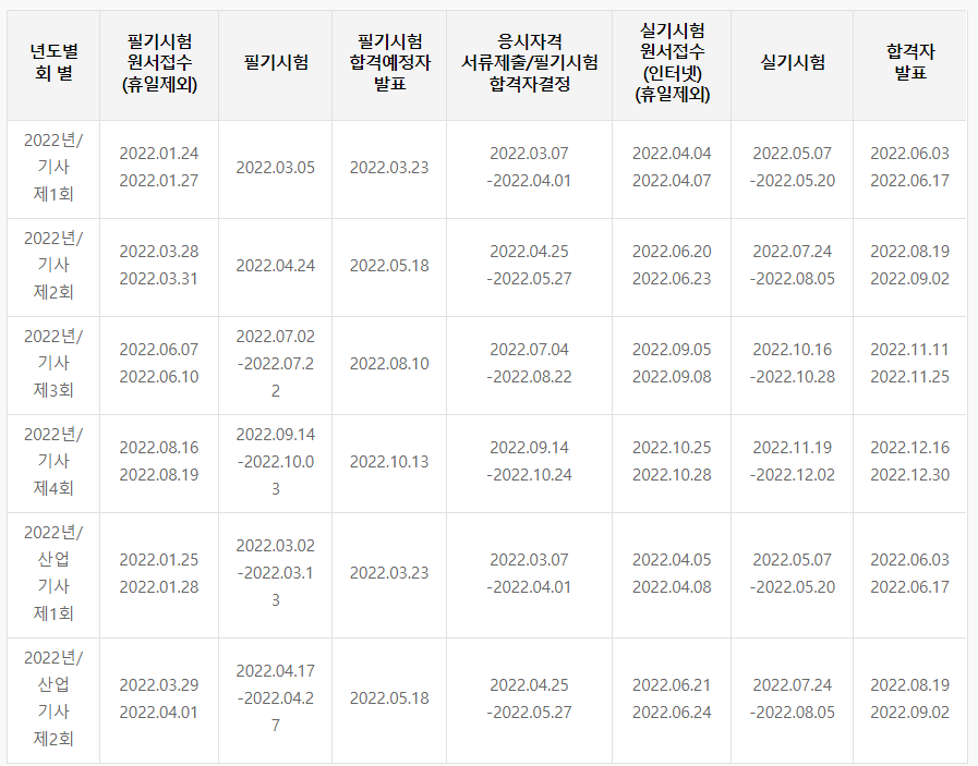 2022년 정보처리기사 시험일정이 공지되었습니다