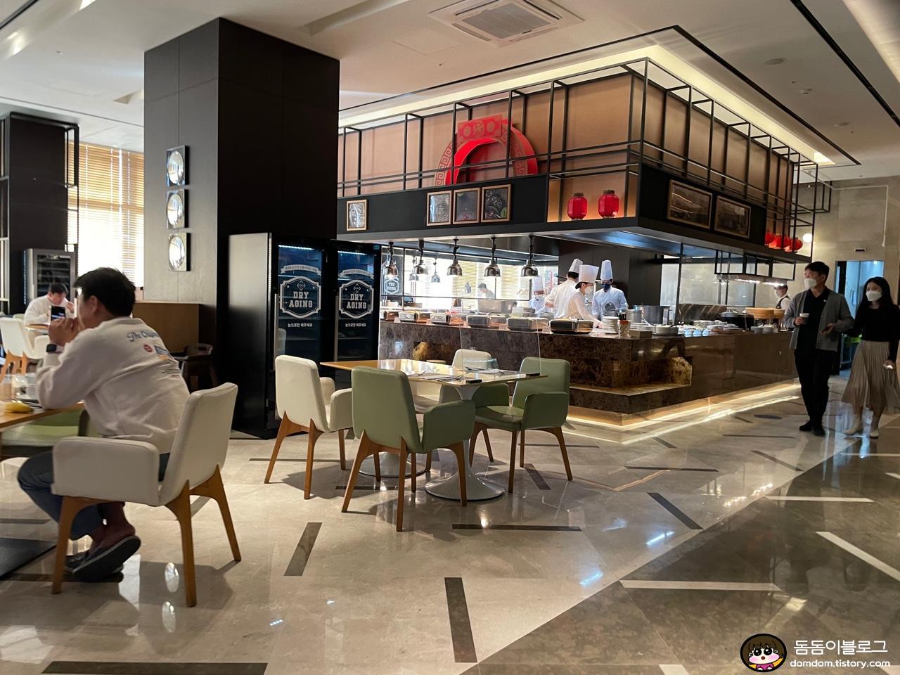 다음날 일어나서 조식을 먹으러 왔을 때는 프리미어 라운지에서보다 메뉴가 다양했어요
