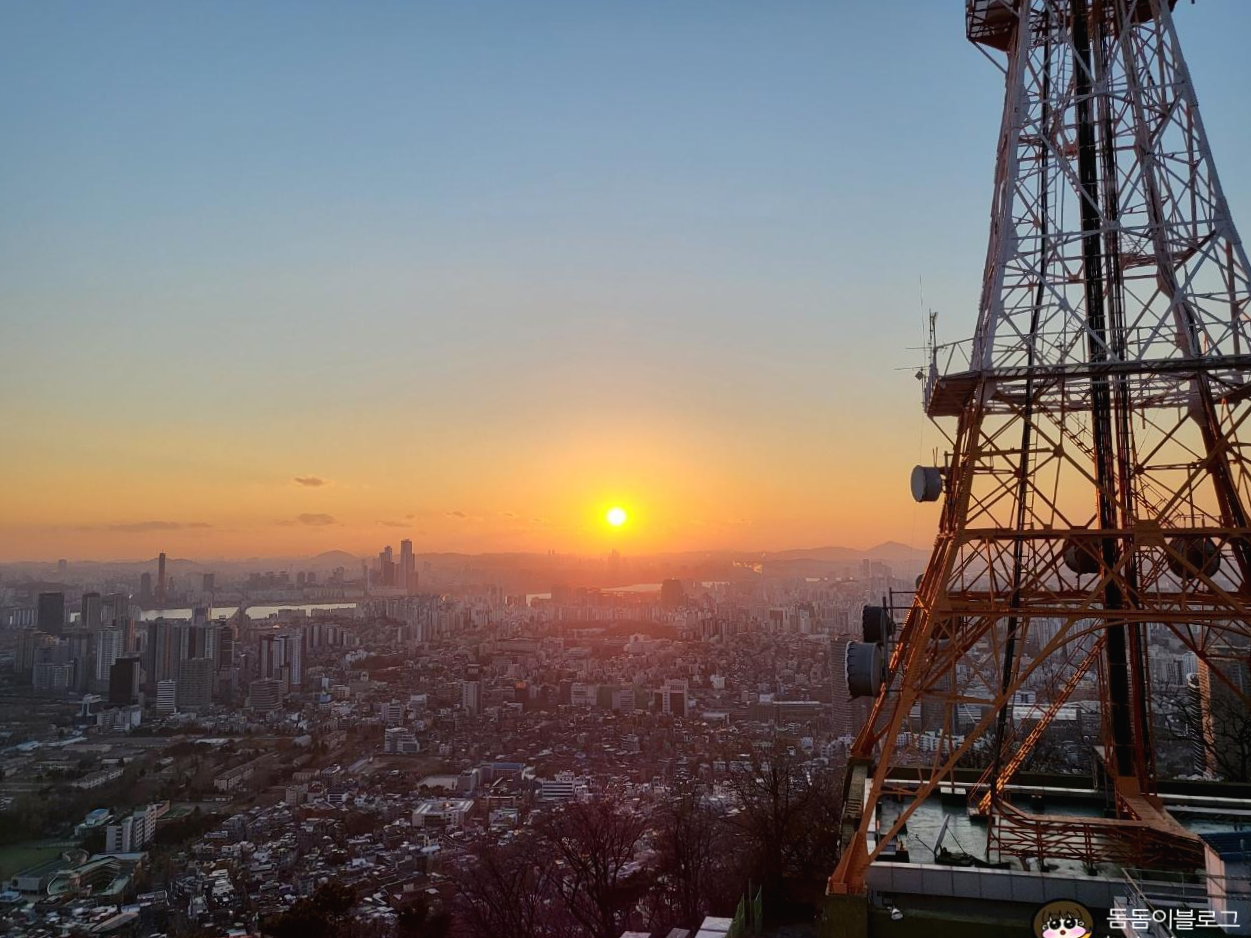 전망대 올라가지 않고 남산타워 5층에서 젤 높은 곳에서 찍은 노을이에요