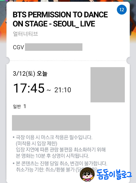 CGV에서 3월 12일 17시 45분부터 21시 10분까지 실시간 라이브 뷰잉이 이루어졌어요