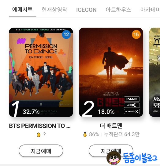 BTS PERMISSION TO DANCE ON STAGE - SEOUL: LIVE VEWING이 더 배트맨을 제치고 예매 1위를 기록!!👍👍