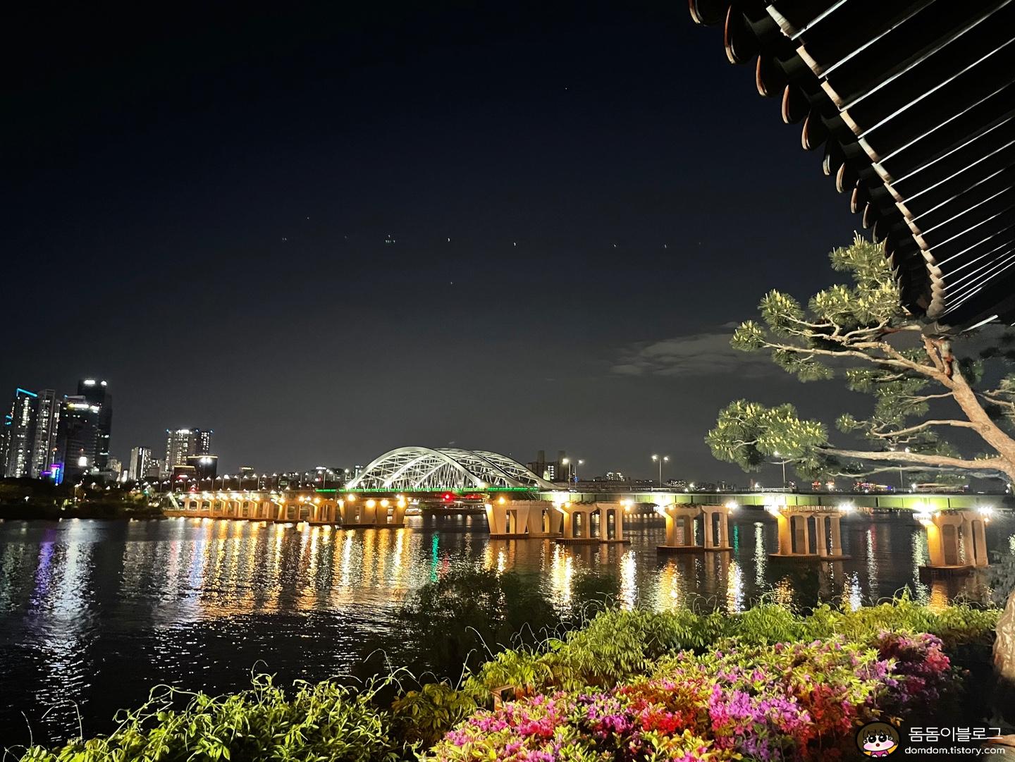 깜깜한 곳에서 한강을 바라보았을 때의 모습이다
