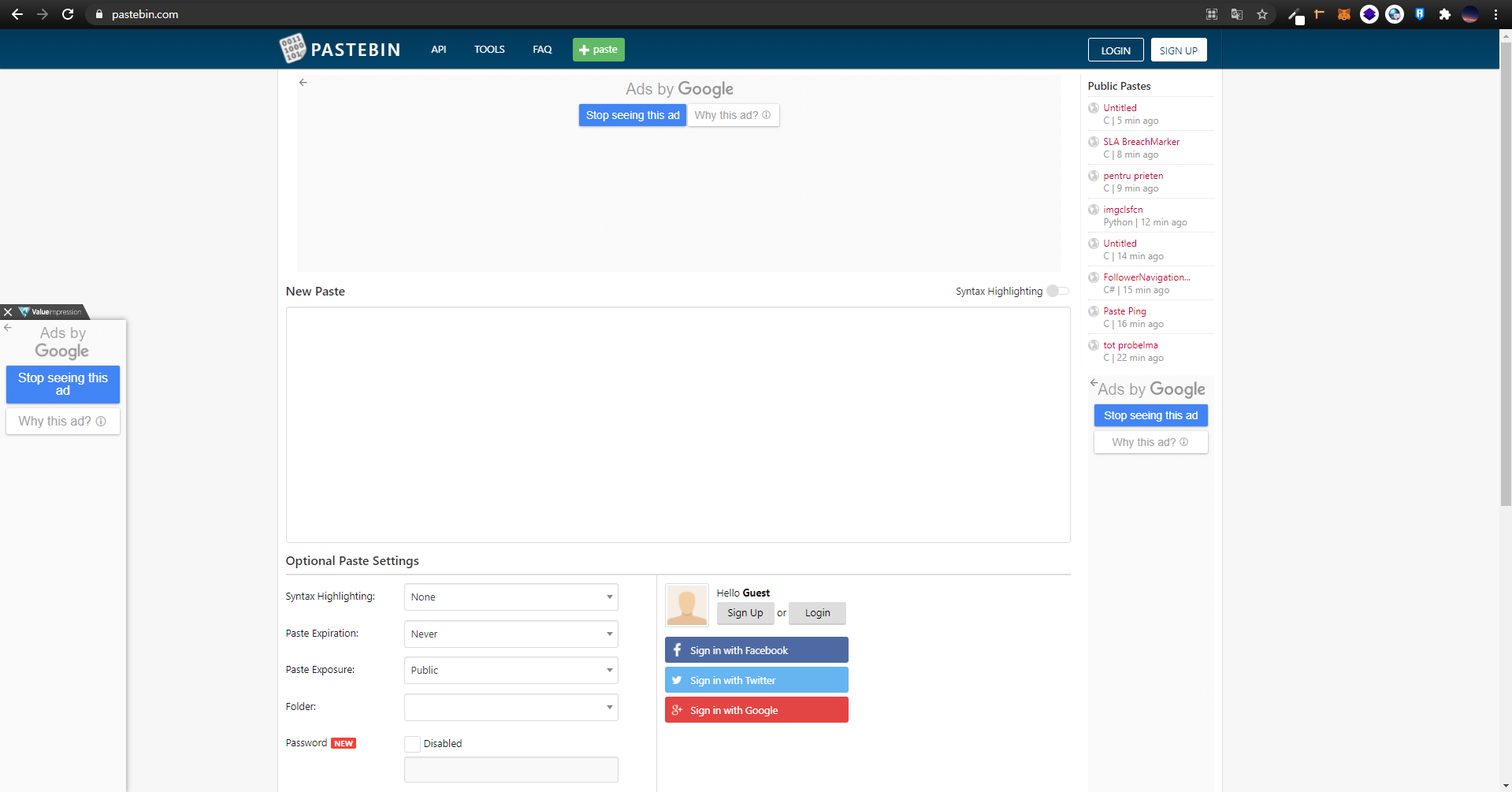 그렇기에 이 pastebin이라는 걸 사용한다. pastebin은 서비스의 이름일 뿐이다. 해당 서비스를 구현해놓은 웹사이트는 많다. 그 중에서 무료로 사용할 수 있는 사이트 아무거나 사용하면 된다.