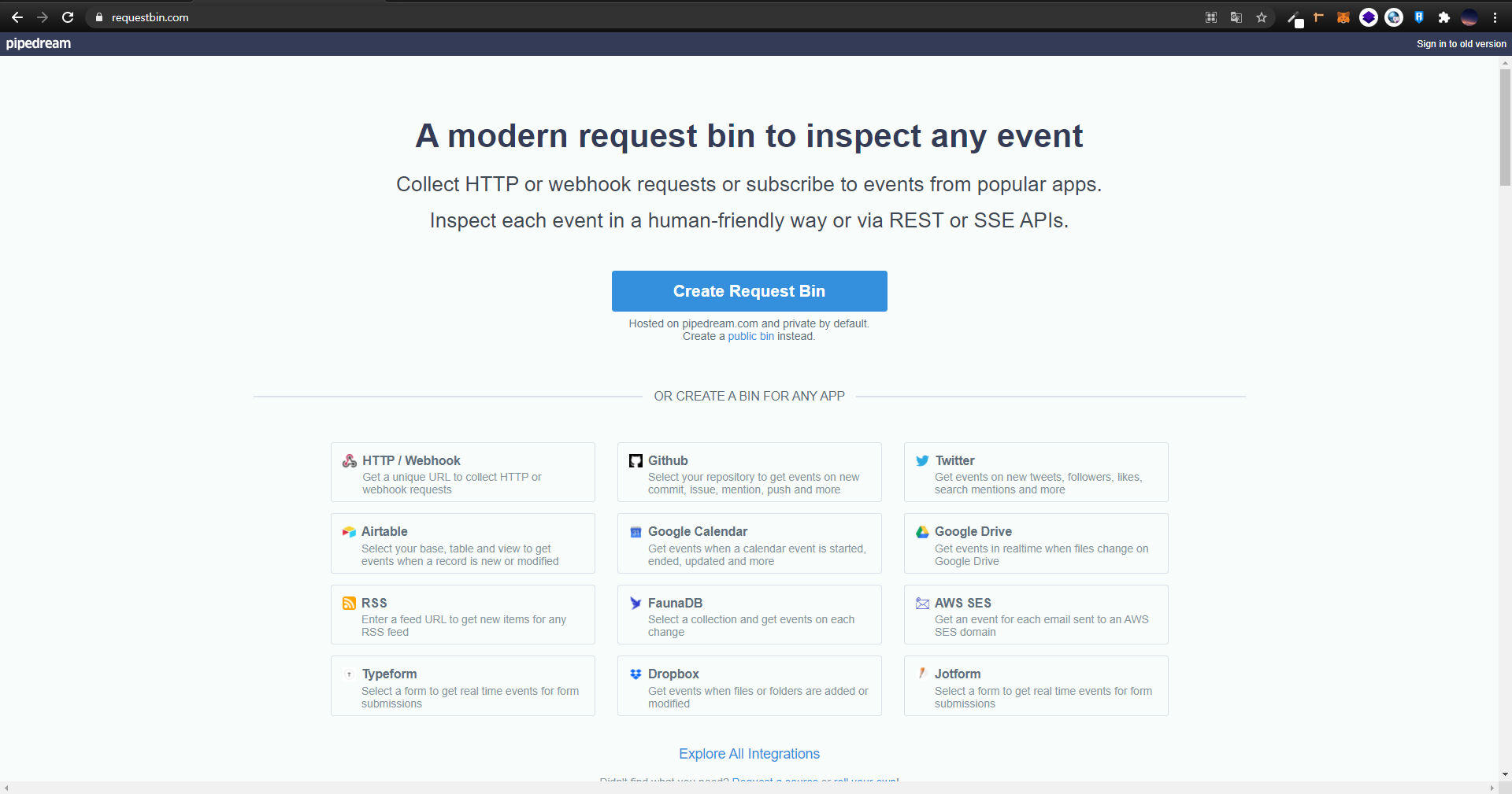 requestbin도 여러 사이트가 있다. 그 중에서 내가 가장 많이 사용하는 곳은 requestbin.com/ 이다.