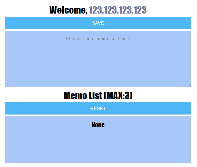 위 이미지는 문제의 첫 화면입니다. "Please input memo contents" Placeholder 부분에 내용을 작성 후 SAVE 버튼을 누르면 아래 Memo List 에 최대 3개까지 메모 내용이 올라갑니다.