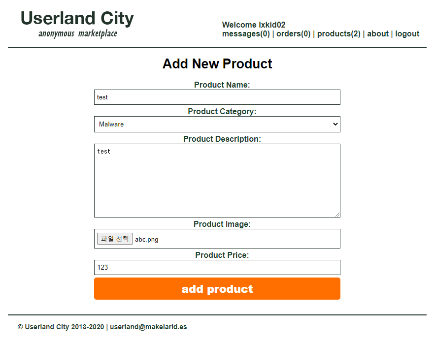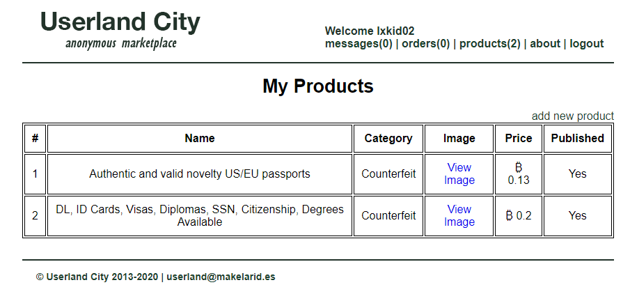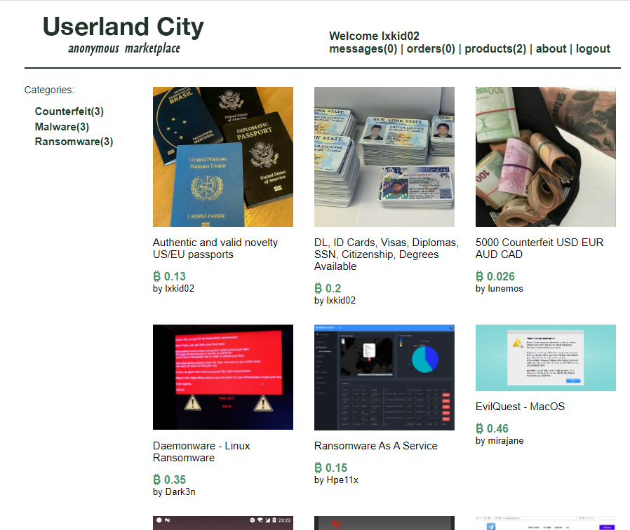 해당 계정으로 접속해보면 아래와 같은 화면이 나옵니다. 문제 지문에 나온대로 다크넷의 마켓에서 개인정보를 비트코인을 주고 판매하는 사이트 같습니다.
