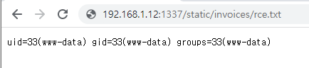 /app/static/invoices/ 경로에 rce.txt 라는 파일을 생성하고 내용으로는 id 명령어의 출력값을 넣도록 해보았습니다.