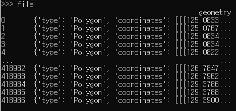 제가 읽어온 데이터에는 geojson 좌표데이터가 들어있어요.
