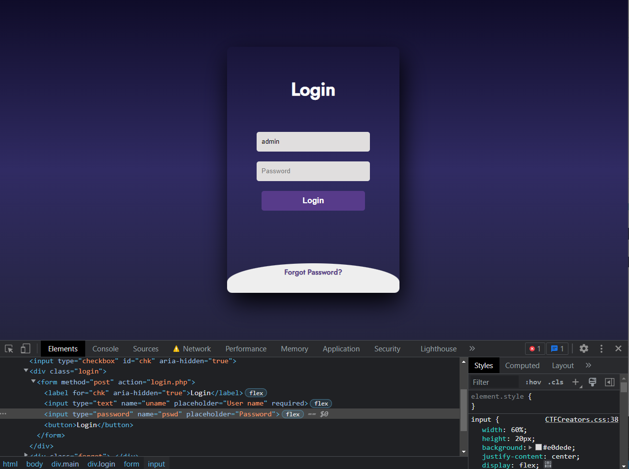 위 password hash 값을 crack 해보았더니 공백문자가 나왔고, 실제 로그인 페이지에서 password input 태그의 required 속성을 제거하여 로그인할 수 있었습니다.