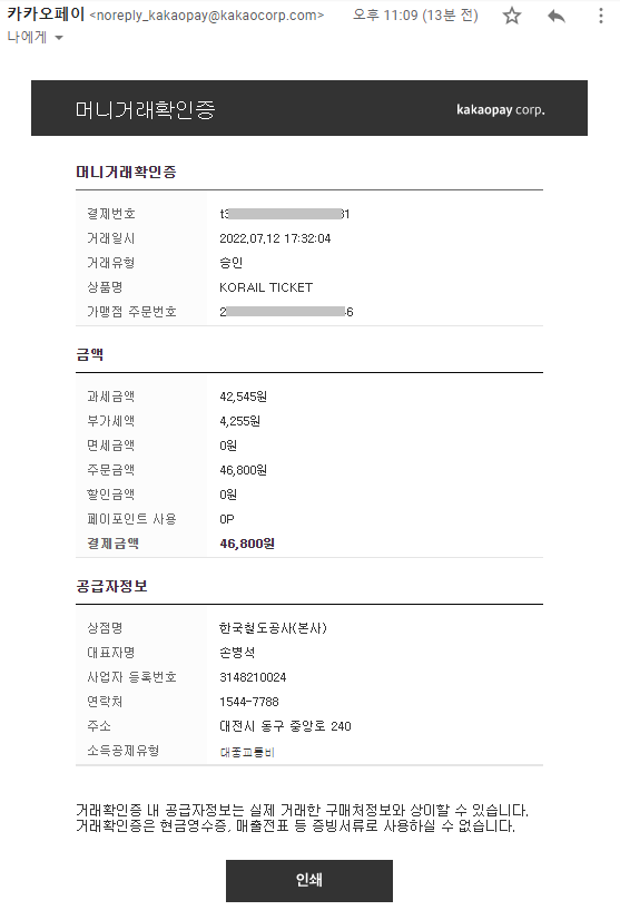 오늘 저는 KTX, 택시 같은 대중 교통을 이용하고서 이를 증빙할 수 있는 서류를 뽑아야 했는데요.