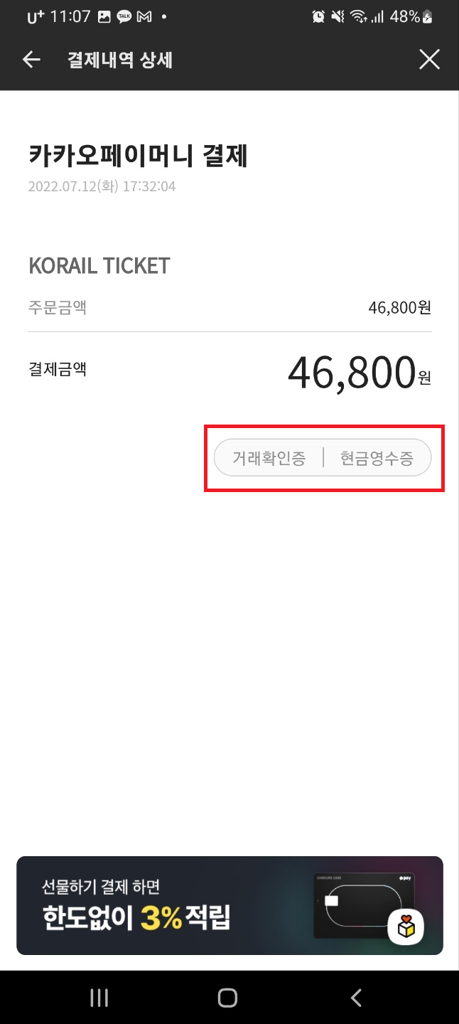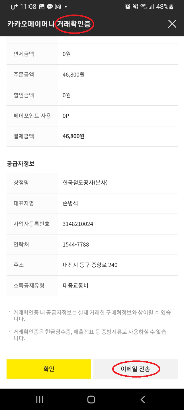 거래확인증 버튼을 누르면 다음과 같이 나옵니다.