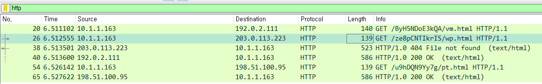 실제 패킷상에서는 vm.html 과 pt.html 즉 www1.dll 과 www4.dll 파일만 다운로드한 것으로 보여집니다. wp.html 은 File not found가 떴고 다른 URL로는 요청 자체를 안한 것처럼 보이기 때문입니다.