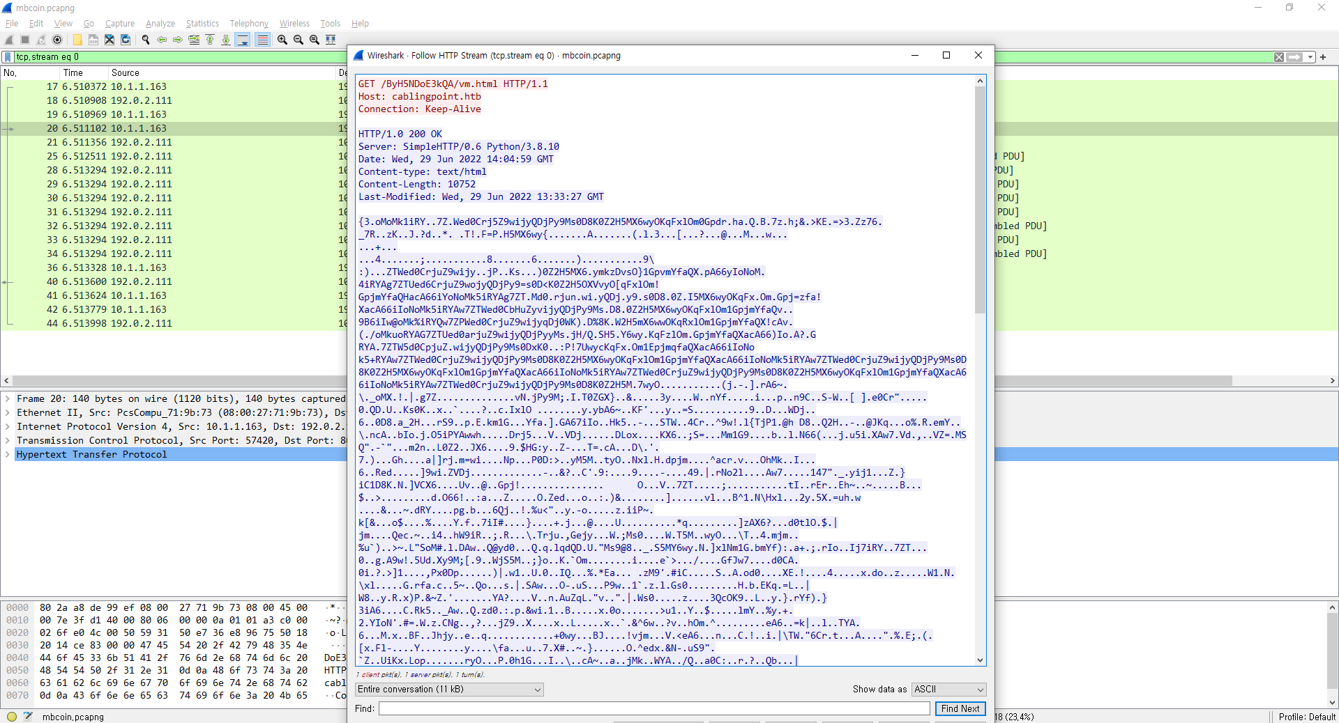 The zip file consisted of 2 files: mbcoin.doc and mbcoin.pcapng.