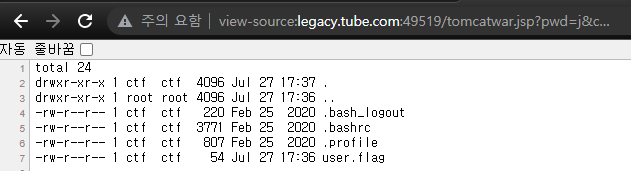 그리고 ls -al 명령을 수행해봤을 때 user.flag 파일을 확인할 수 있었습니다.